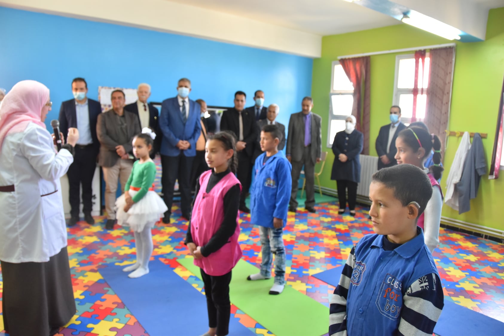 استهلت المراسم بزيارة جناح خاص بإنجازات تلاميذ مدرسة الاطفال المعوقين سمعيا، لتتفقد السيدة الوالي ايضا مختلف أجنحة و أقسام المركز. كما تم تقديم عرض لمختلف نشاطات القطاع ، إلى جانب معرض لبعض الأعمال و الأنشطة اليدوية التي يقومون بها.