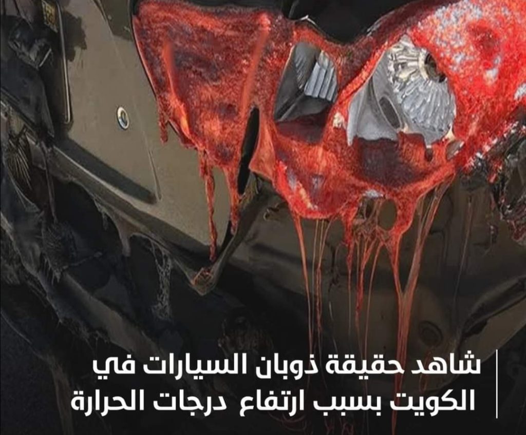 تداول رواد مواقع التواصل الإجتماعي بعض الصور لسيارتين مذابين من شدة ارتفاع درجات الحرارة، وأن درجات الحرارة وصلت في الكويت إلى 65 درجة مئوية.