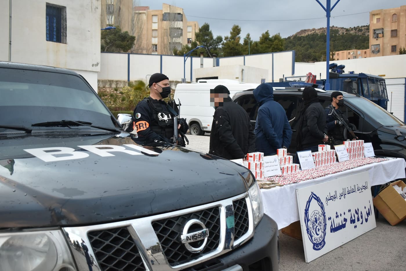 توقيف شبكة اجرامية خطيرة يمتد نشاطها من الولايات الجنوبية إلى غاية مدينة خنشلة BRI خنشلة تطيح بأخطر شبكة اجرامية تنشط في التهريب والإتجار في المواد الصيدلانية ذات الخصائص المخدرة و تتمكن من ضبط قرابة 28000 كبسولة من نوع بريغابالين في إطار محاربة الجريمة بمختلف أشكالها، لا سيما المرتبطة منها ببيع و ترويج المخدرات و المؤثرات العقلية بطريقة غير مشروعة ، تمكنت فرقة البحث و التدخل خنشلة من حجز قرابة 28000 كبسولة من المؤثرات العقلية نوع بريغابالين 300 ملغ مع حجز مركبتين سياحيتين تستغلان في العمل الإجرامي ، و ضبط مبلغ مالي معتبر من العملة الوطنية يقدر بـ 160 مليون سنتيم من عائدات بيع السموم . حيثيات القضية تعـود إلى تحريات باشرتها فرقة البحث و التدخل بالمصلحة الولائية للشرطة القضائية بأمن ولاية خنشلة ، التي أفضت إلى الكشف عن شبكة إجرامية خطيرة يمتد نشاطها من إحدى الولايات الجنوبية وصولا إلى ولاية خنشلة تنشط في مجال بيع و ترويج أدوية ذات خصائص مخدرة ، مستغلين بذلك مركبة سياحية للقيام بالعمل الإجرامي . بناء على ذلك تم إعداد خطة عمل محكمة من أجل توقيف المركبة ذات المواصفات الواردة بالمعلومات المستقاة ، تم من خلالها ترصد مسار المركبة السياحية ليتم توقيفها بالمدخل الغربي لمدينة خنشلة ، على متنها شخص في العقد الثاني من العمر بعد اخضاع المركبة للتفتيش الدقيق تم العثور بداخلها على علب كرتونية كبيرة الحجم تحتوي بداخلها 26400 كبسولة دواء من نوع بريغابالين 300 ملغ ذات منشأ أجنبي ليتم ضبط المحجوزات و تحويلها مع اقتياد المشتبه فيه إلى مقر المصلحة الأمنية على ذمة التحقيق . التحقيق المستمر في القضية ، بعد الإعتماد على تقنيات البحث و التحري في الجريمة تم الكشف عن هوية شخص آخر في العقد الثالث من العمر ينحدر من إحدى الولايات الجنوبية بالوطن ، بعد استكمال كافة الإجراءات القانونية بالتنسيق مع الجهات القضائية لدى محكمة خنشلة تم التنقل إلى مسكن المشتبه فيه بعد اخضاعه للتفتيش الدقيق تم ضبط 1082 كبسولة من الأدوية ذات الخصائص المخدرة بريغابالين 300 ملغ ذات منشأ أجنبي ، مبلغ مالي معتبر من العملة الوطنية يقدر بـ146 مليون سنتيم ، هواتف نقالة بالإضافة إلى بذلة عسكرية ، ليتم ضبط المحجوزات توقيف المشتبه فيه و اقتياده إلى مقر المصلحة على ذمة التحقيق. مواصلة في التحقيق المفتوح من قبل فرقة البحث و التدخل خنشلة ، تم تحديد هوية شخص آخر في العقد الثاني من العمر ينحدر من خنشلة ينشط ضمن الشبكة الإجرامية المختصة في ترويج المؤثرات العقلية ، ليتم توقيفه بوسط مدينة خنشلة واقتياده إلى مقر المصلحة الأمنية على ذمة التحقيق ، ليتم بعدها التنقل إلى مسكن المشتبه فيه بعد استكمال كافة الإجراءات القانونية ، بعد التفتيش الدقيق للمسكن العائلي تم العثور بداخله على كمية من المؤثرات العقلية تقدر بـ 90 كبسولة من نوع بريغابالين 300 ملغ ذات منشأ أجنبي ليتم تحويلها إلى مقر المصلحة ، كما تم تحديد هوية شخص آخر في العقد السادس من العمر ينحدر من خنشلة ينشط ضمن الشبكة الإجرامية المختصة في ترويج المؤثرات العقلية ، ليتم توقيفه واقتياده إلى مقر المصلحة الأمنية على ذمة التحقيق ، ليتم بعدها التنقل إلى مسكن المشتبه فيه بعد استكمال كافة الإجراءات القانونية ، بعد التفتيش الدقيق للمسكن العائلي تم العثور بداخله على كمية من المؤثرات العقلية تقدر بـ 07 كبسولات من نوع برغابالين 300 ملغ ذات منشأ أجنبي ، بالإضافة إلى مبلغ مالي من العملة الوطنية يقدر بـ150.500 دج من عائدات بيع المؤثرات العقلية ، ليتم تحويلها إلى مقر المصلحة الأمنية ، لتصل الكمية الإجمالية للأدوية ذات الخصائص المخدرة التي تم ضبطها بحوزة الشبكة الإجرامية إلى 27579 كبسولة من نوع بريغابالين ذات منشأ أجنبي و مبلغ مالي معتبر من العملة الوطنية يقدر بـ 160 مليون سنتيم ، اضافة إلى مركبتين سياحيتين تستغلال في العمل الإجرامي. بعد استكمال إجراءات التحقيق تم إنجاز ملف جزائي في حق المشتبه فيهم البالغ عدد